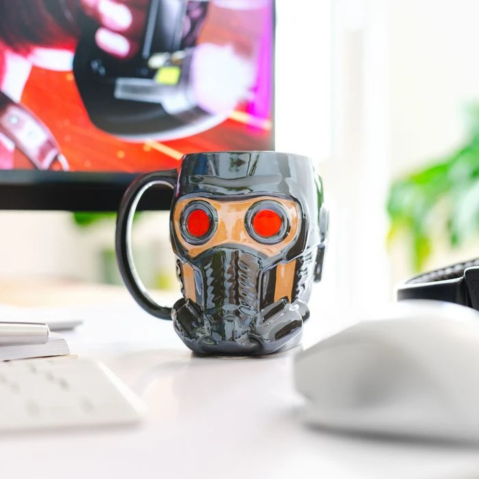 Les fans des Gardiens de la Galaxie se réjouissent de cette pause-café reposante, au milieu des monstres à combattre, des méchants à affronter et des mondes à sauver. Mais d’une part, personne n’a dit que la mission de surveillance serait une partie de plaisir, mais d’autre part, il est agréable de se rendre utile sous la direction du grand Star-Lord. Mais d’abord, comme je l’ai dit, prenons une pause avec une boisson chaude ou fraîche : dans le mug en céramique 3D, qui reproduit fidèlement le casque du Super-Gardien avec ses yeux rouges globuleux.