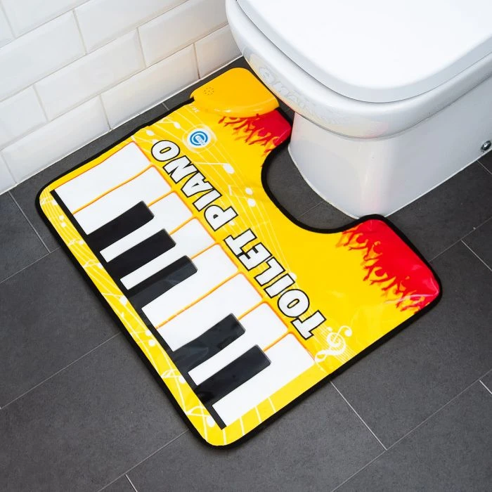 Ce n’est peut-être pas le cadeau idéal pour les vrais virtuoses, mais en tout cas pour ceux et celles qui ont de l’humour et qui aiment s’occuper aux toilettes : le tapis WC piano transforme le petit coin tranquille en un atelier de créativité. Il met à la disposition des musiciens en herbe toute une octave de touches qu’il est possible d’activer avec les pieds et qui diffusent la musique à l’aide d’un haut-parleur intégré. Et comme les artistes n’aiment généralement pas être dérangés lorsqu’ils créent, nous avons également joint un panneau adéquat.